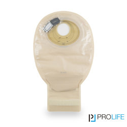 Ein-teiliges Stomabeutel-System mit Ausstreiffunktionalität für Ileostoma-Anlagen, dessen Anwendung sich bei Ileostoma eignet, die sich oberhalb des Hautniveaus befinden oder prolabiert sind. Es hat die folgenden Eigenschaften: